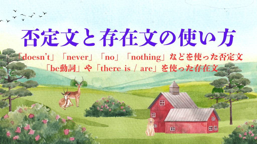 否定文と存在文の使い方 英語では、「〜しない」「〜がない」「〜がいる・ある」といった基本表現を使いこなせることが大切です。この記事では、否定文(doesn’t / never / no など)と「ある・いる」を表す文(be動詞・there構文)の基本をわかりやすく整... -
